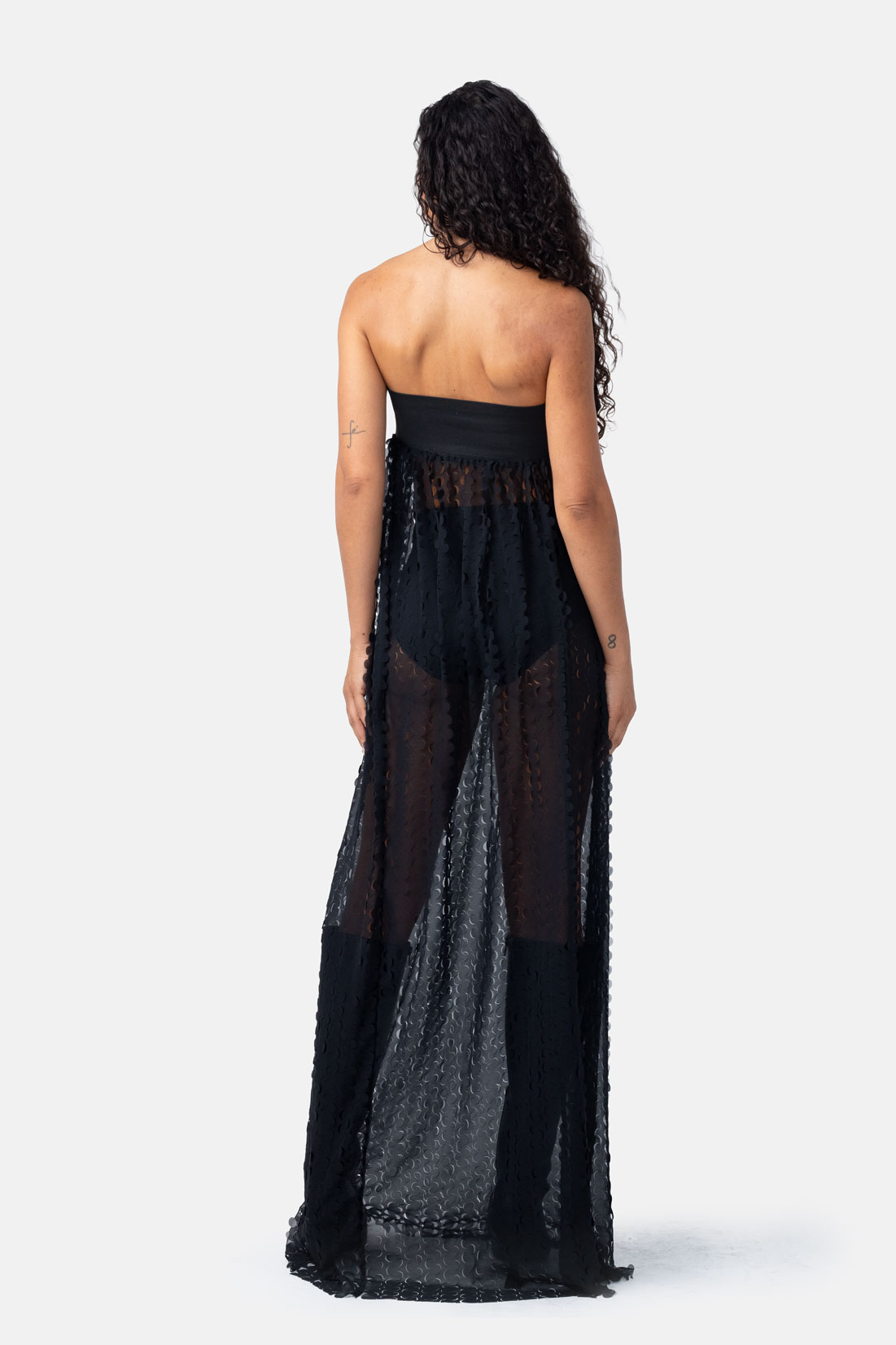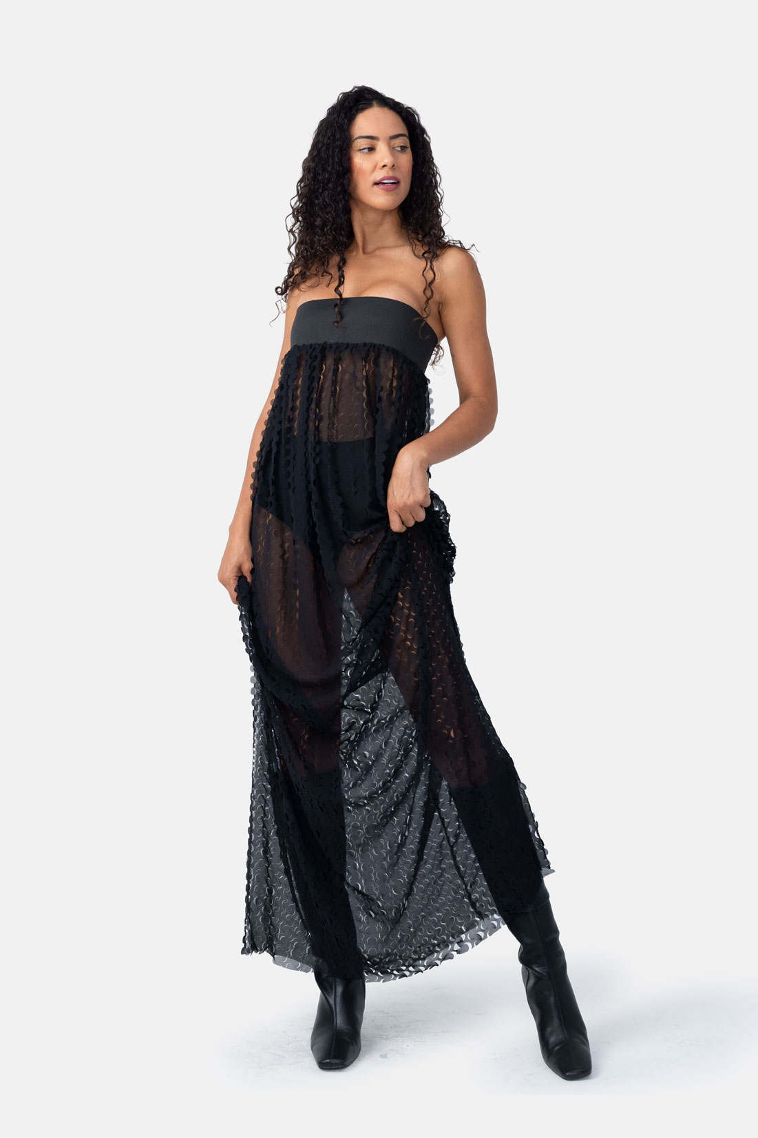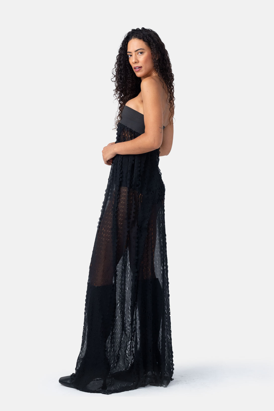 Crescent – Black Sheer Trapeze Maxi Dress