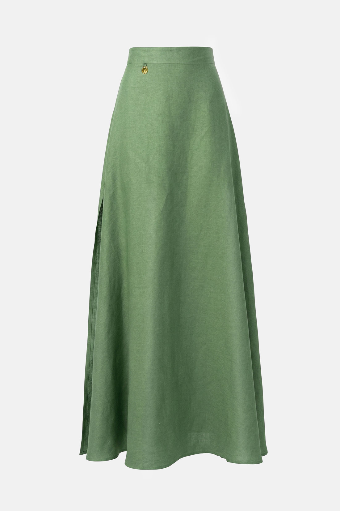 Olive Green Linen Maxi Skirt with Slits by Kargede Designer Fashion Front Ghost Mannequin