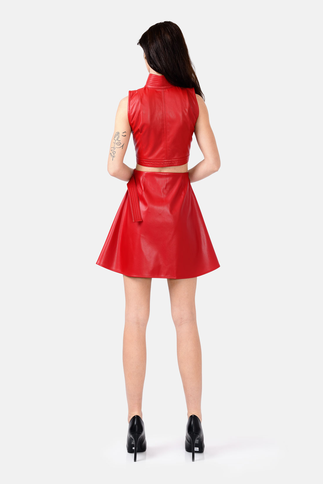 Flared Vegan Leather Mini Wrap Skirt in Red
