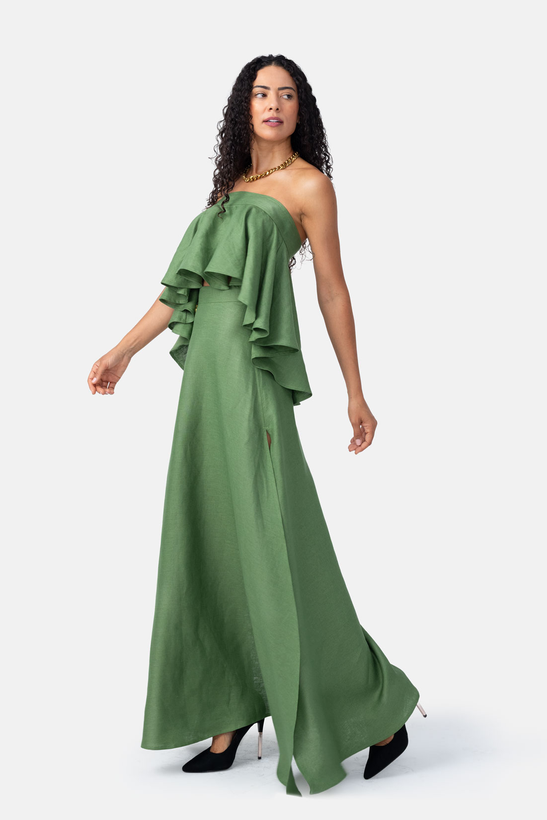 Olive Green Linen Crop Top Strapless Silhouette by Kargede Designer FashionGhost Mannequin